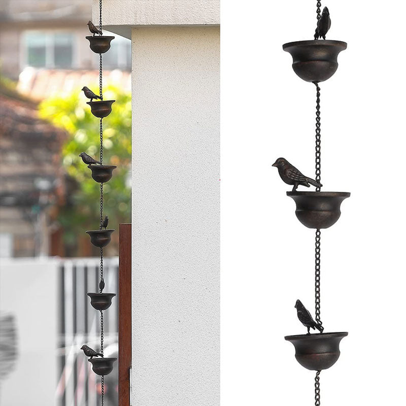 АРТИСТИЧЕН ДИЗАЙН - Заменете грозните водосточни тръби с елегантна и богато украсена верига за дъжд с очарователни верижни звена във формата на птица, за да придадете красота на дома си.