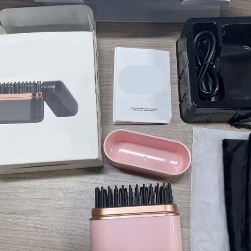Комплектът включва: 1 * Преносим безжичен гребен за изправяне на коса + USB кабел + Ръководство за потребителя